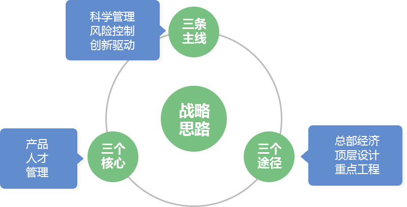三條主線——“科學(xué)管理、創(chuàng)新驅(qū)動、風(fēng)險控制”。以科學(xué)管理為基礎(chǔ),創(chuàng)新驅(qū)動為方向,風(fēng)險控制為保障。