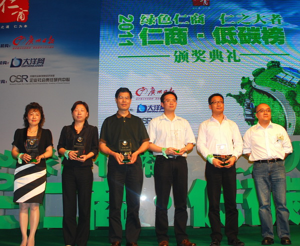 2011年4月26日,由廣州日?qǐng)?bào)、大洋網(wǎng)、聯(lián)動(dòng)中國(guó)社科院經(jīng)濟(jì)學(xué)部企業(yè)社會(huì)責(zé)任研究中心共同舉辦的“2011綠色仁商·仁之大者,仁商·低碳榜頒獎(jiǎng)典禮”在廣州長(zhǎng)隆酒店國(guó)際會(huì)議中心隆重舉行,評(píng)選出最佳低碳技術(shù)創(chuàng)新獎(jiǎng)、最佳低碳責(zé)任傳播獎(jiǎng)、最佳低碳公益案例獎(jiǎng)、最佳低碳企業(yè)獎(jiǎng)、最佳低碳商業(yè)領(lǐng)袖獎(jiǎng)五大獎(jiǎng)項(xiàng),我司以“全球首創(chuàng)家庭過(guò)期藥品回收(免費(fèi)更換)機(jī)制”榮獲最佳低碳公益案例獎(jiǎng)。