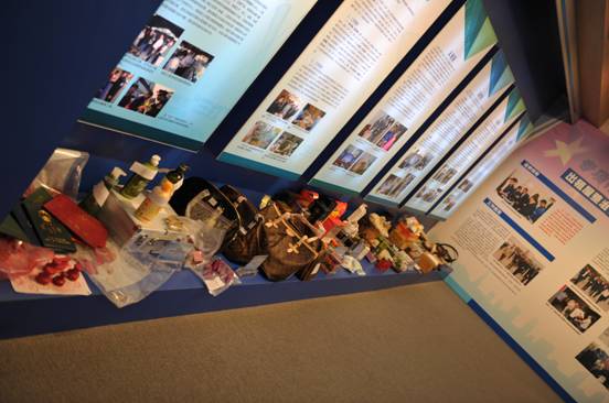 打假實(shí)物展示區(qū)展示了有關(guān)部門在打擊制假販假、欺行霸市行動(dòng)中收繳的假冒名牌手袋、化妝品、假冒印章、高檔煙酒等商品以及收繳的非法槍支、彈藥、管制刀具等。